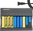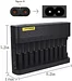 The 18650 Battery Charger 10 Bay is an advanced, intelligent charger equipped with a temperature adjustment function. Designed with ten independent charging channels, this versatile device allows you to simultaneously charge up to ten lithium batteries. The charger displays the status of each battery during the charging process, ensuring efficient and safe operation.