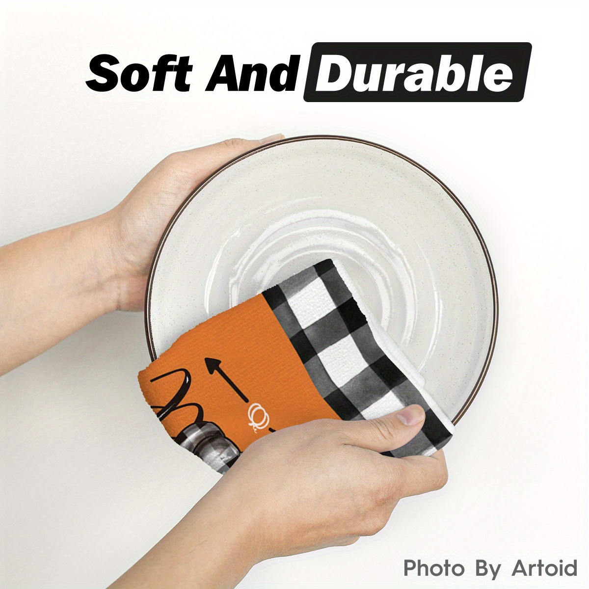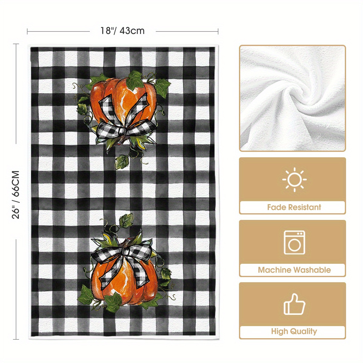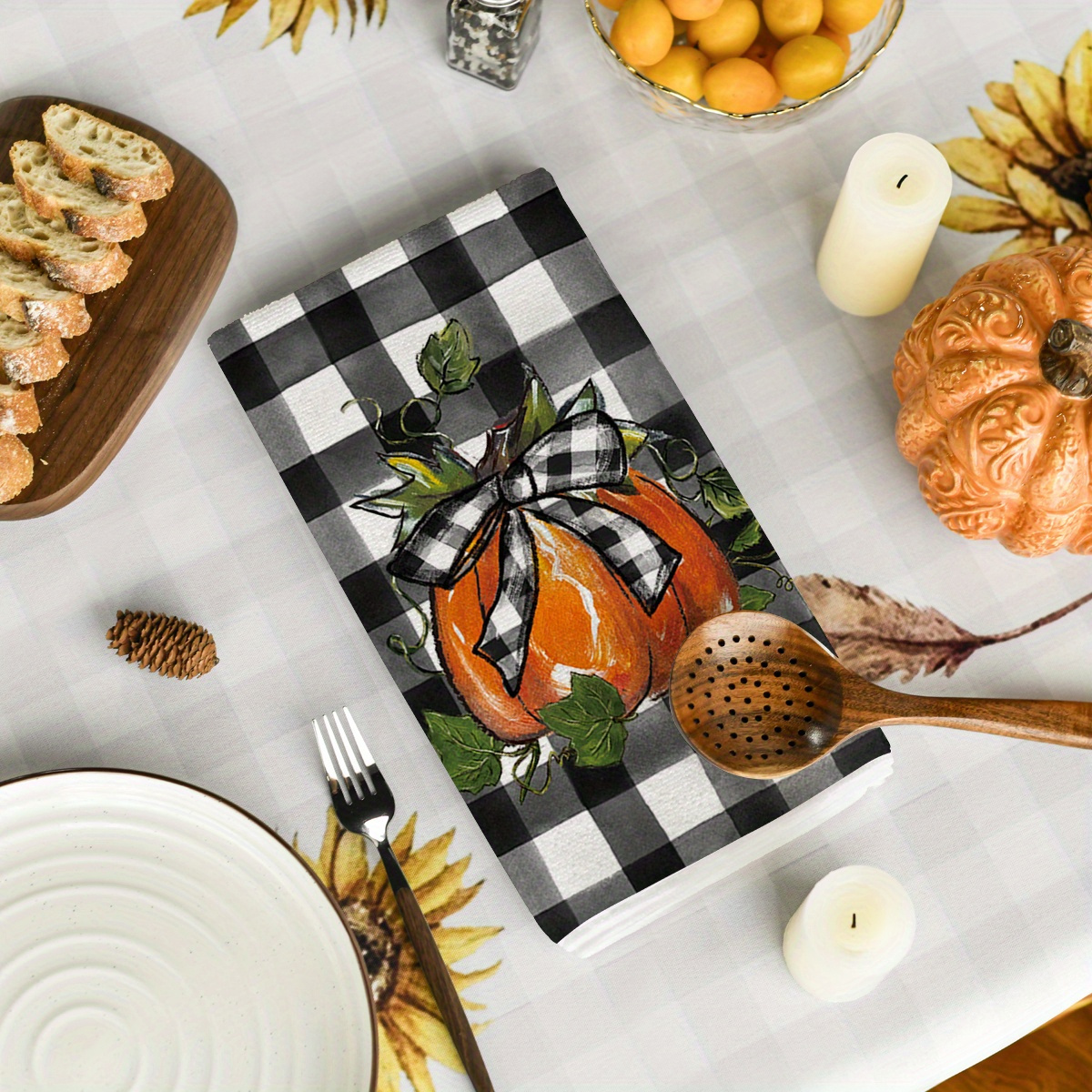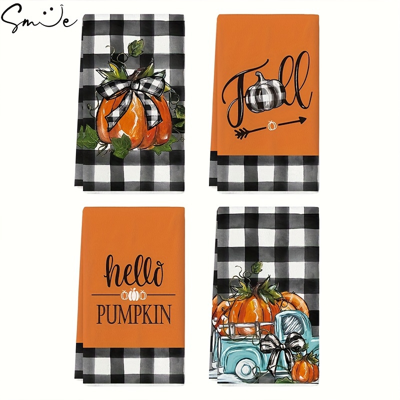 Sm:)e Buffalo Plaid Truck Hello Pumpkin Fall Kitchen Towels Dish Towels, 18x26 Inch Seasonal Decoration Hand Towels Set of 4
